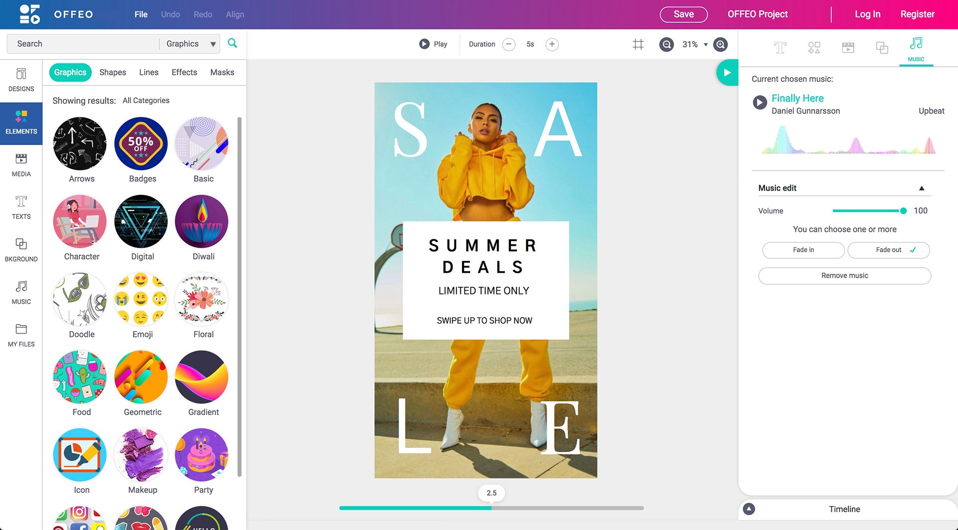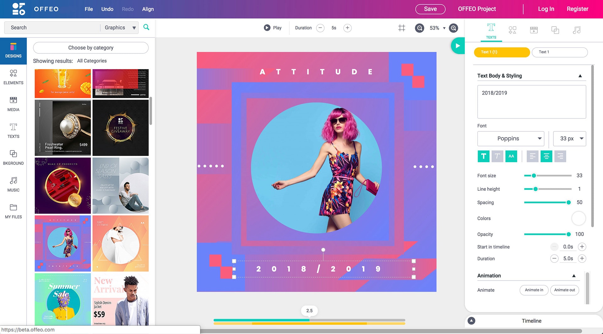 OFFEO Design and animate beautiful videos for your brand. Endless possibilities. No expensive software. No experience needed. Benefits: Simple motion design platform for everyone Easy to start with hundreds of templates Live preview Full creative control Drag and drop thousands of motion graphic elements