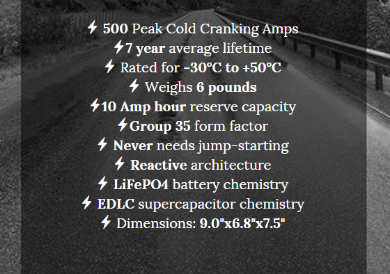 Finally an innovation in battery technology! So smart to just use supercapacitors. It's rare that you use the battery without the car running. Can't wait to see this in every car and motorcycle, although I'm concerned that this will be short lived due to the increasing presence of electric vehicles. Maybe I'm missing something but it seems to only make sense… See more