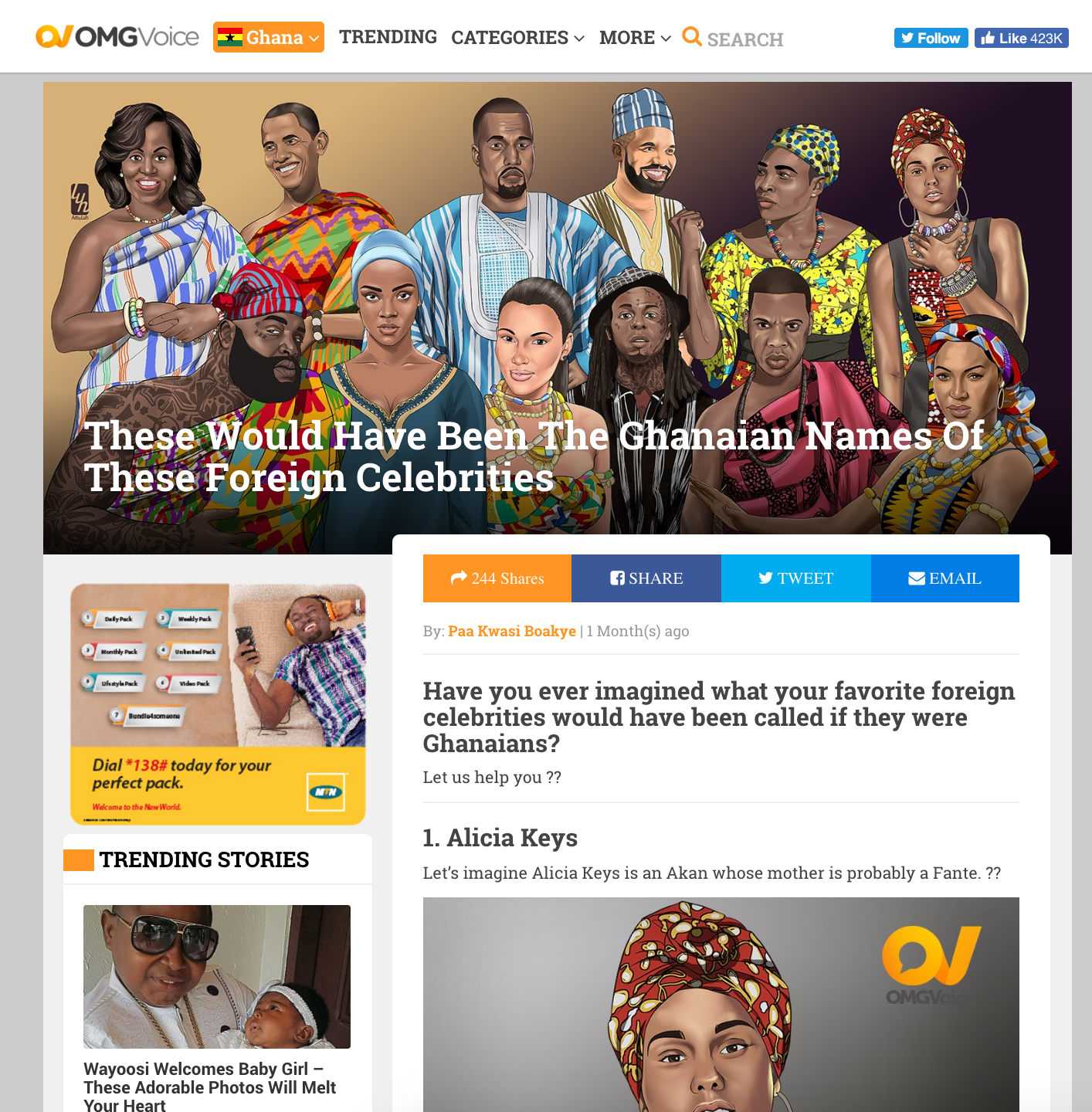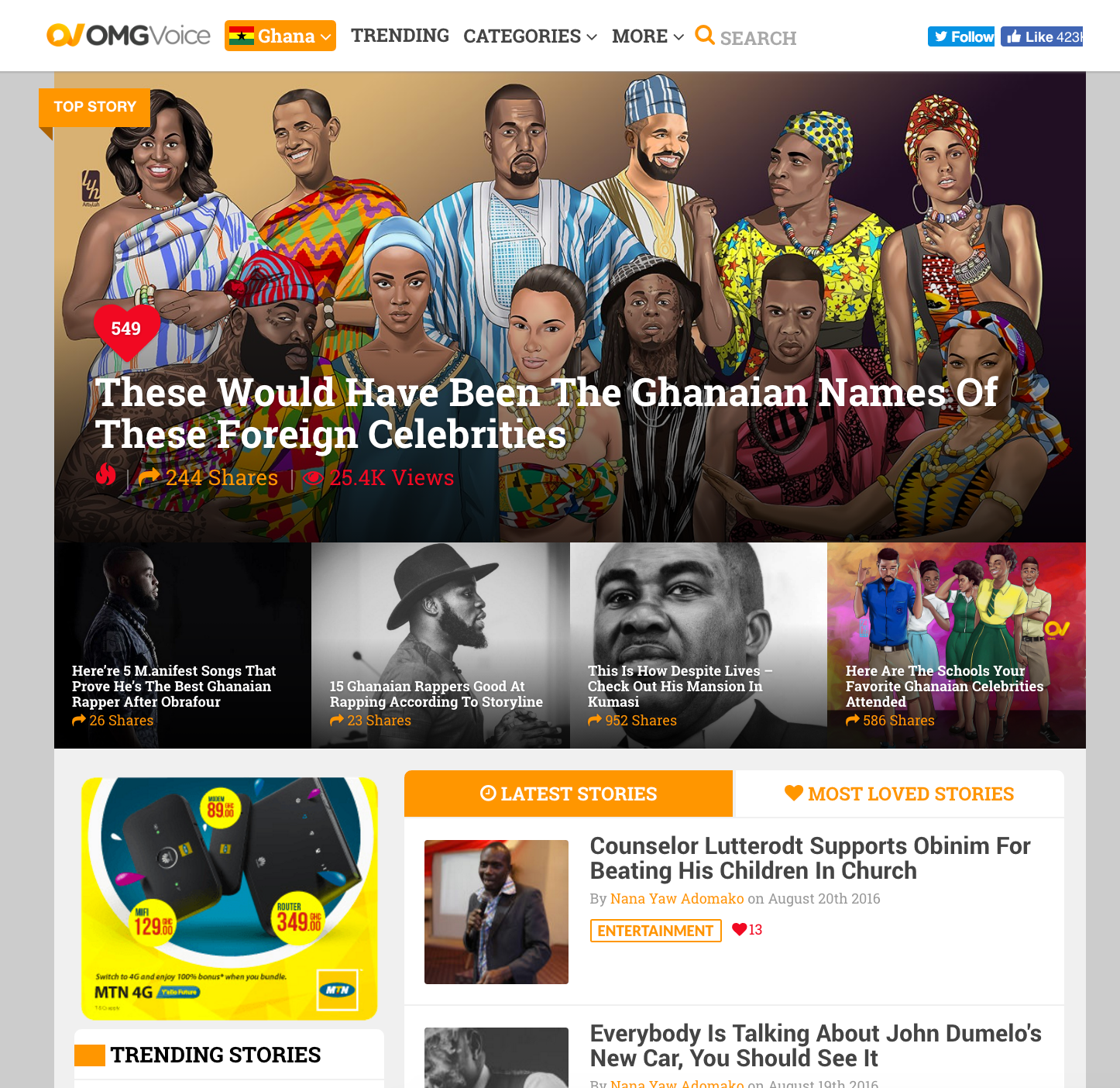 Hey guys I'm Jesse, co-founder of OMG Digital, publishers of OMGVoice.com. We're creating the top destination site for entertainment for African millennials. The site is live in Ghana, Nigeria and Kenya and we're expanding into four more by December. Ready to answer any questions you might have. Cheers!