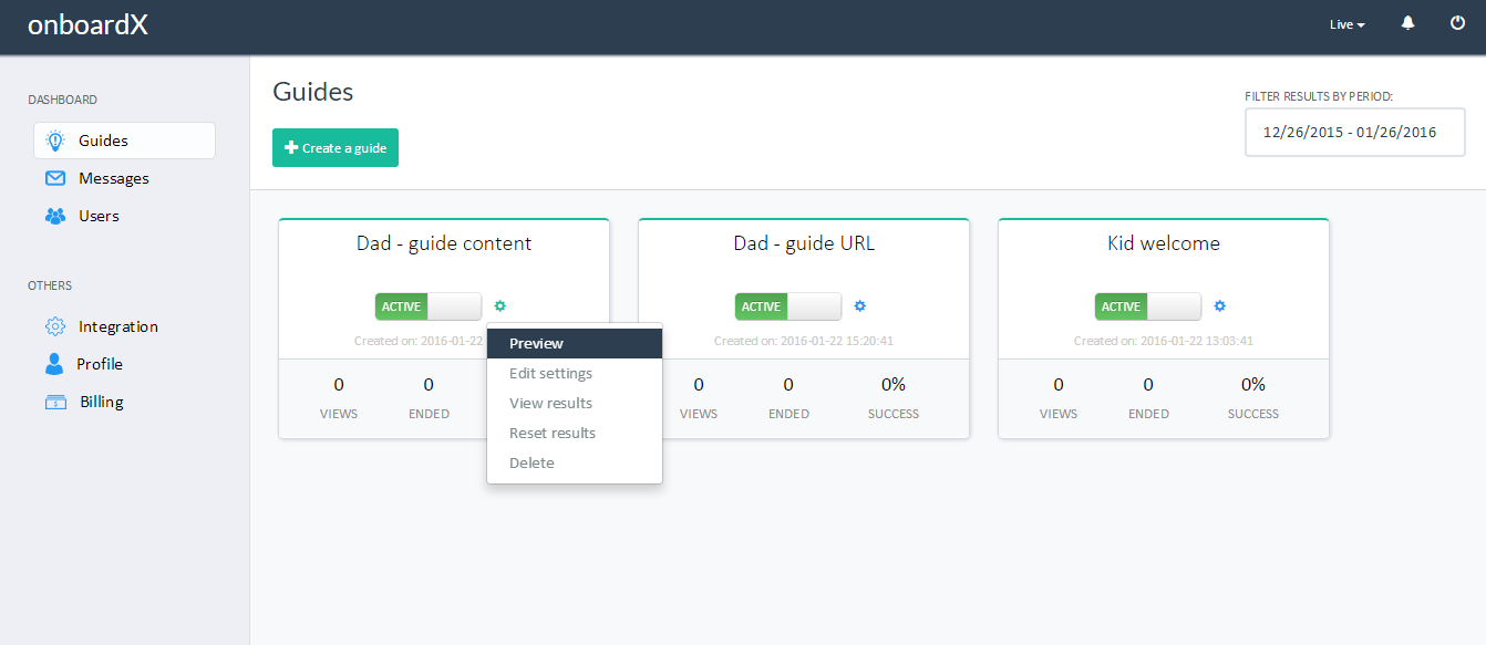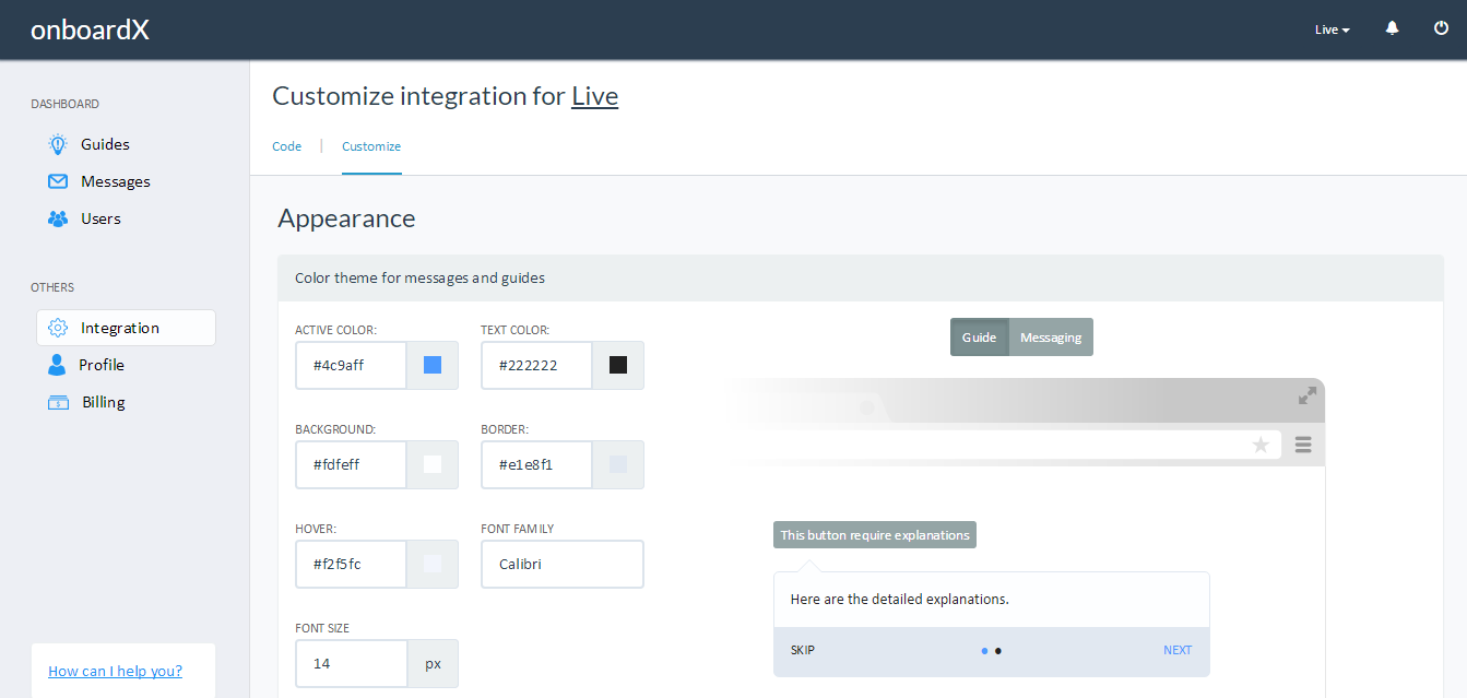 onboardX is a web tool created for product people and aims to help them to create onboarding scenarios or to notify users about new features/changes.