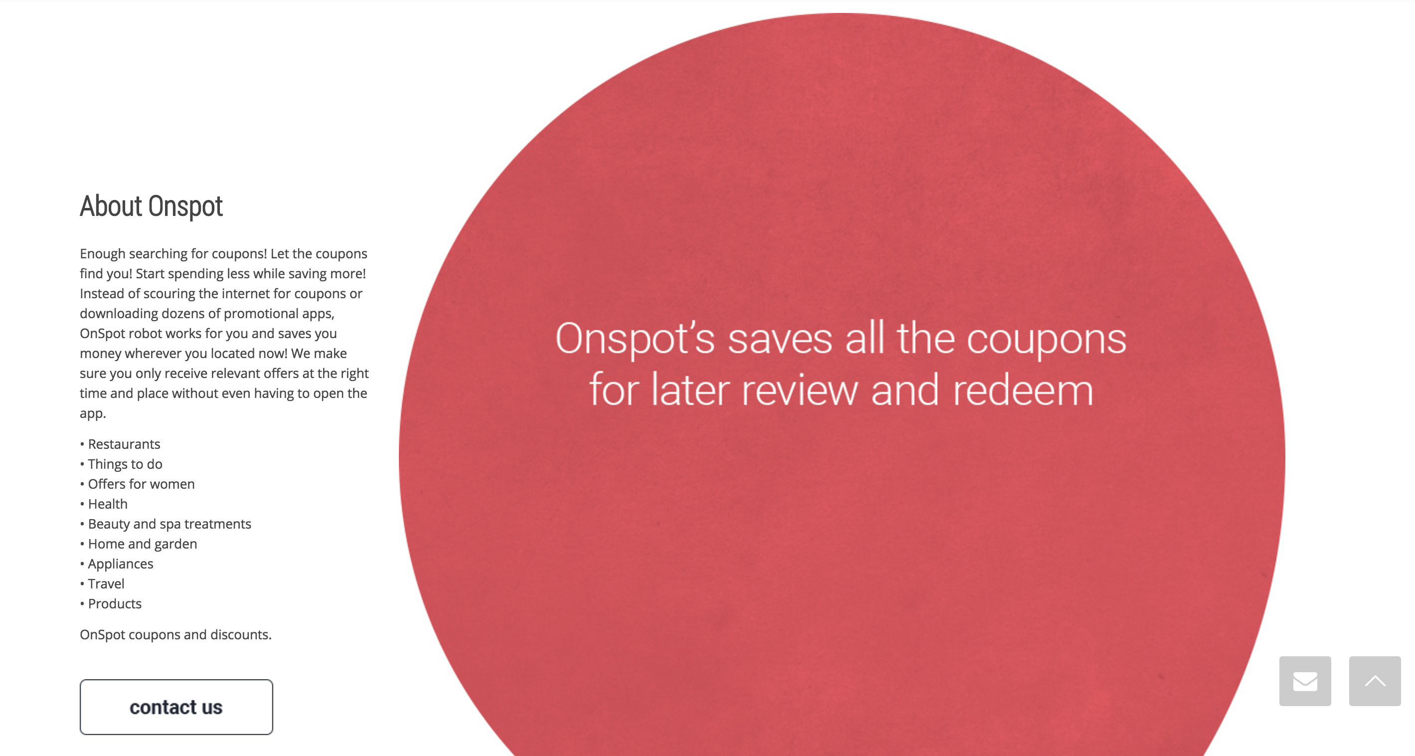 Hi all, we hope you like our product, it was made because most people forget to bring coupons with them before they leave for shopping/eating/going out, the thing about onspot is that you dont need to remember anymore. we will notify you where ever you go about a relevant coupon for immediate use. we would love to get you feedbacks and ofcourse support :)