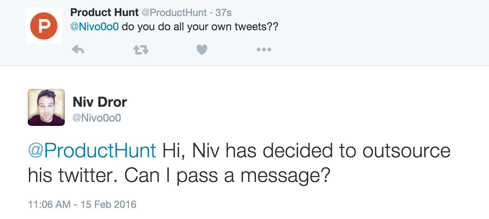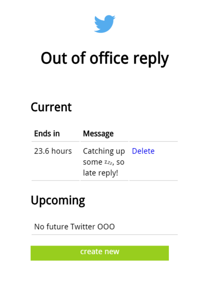 So this started with this tweet of @rrhoover https://twitter.com/rrhoover/sta... And since I had an free evening (which turned out to be an entire night), I decided to give this a go. Resulting in this Out of Office reply for Twitter.