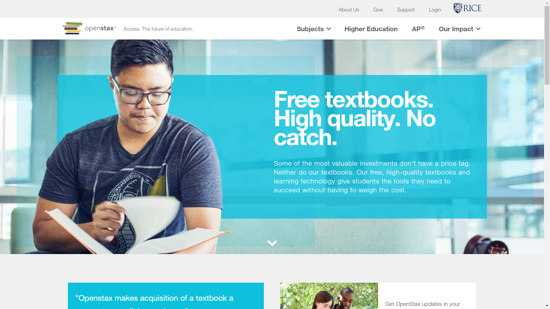 OpenStax gives away free, peer-reviewed textbooks that meet scope and sequence requirements for introductory college courses. OpenStax College is an initiative of Rice University. Since 2012, OpenStax has created peer-reviewed open textbooks, which are available in both printed and digital formats.