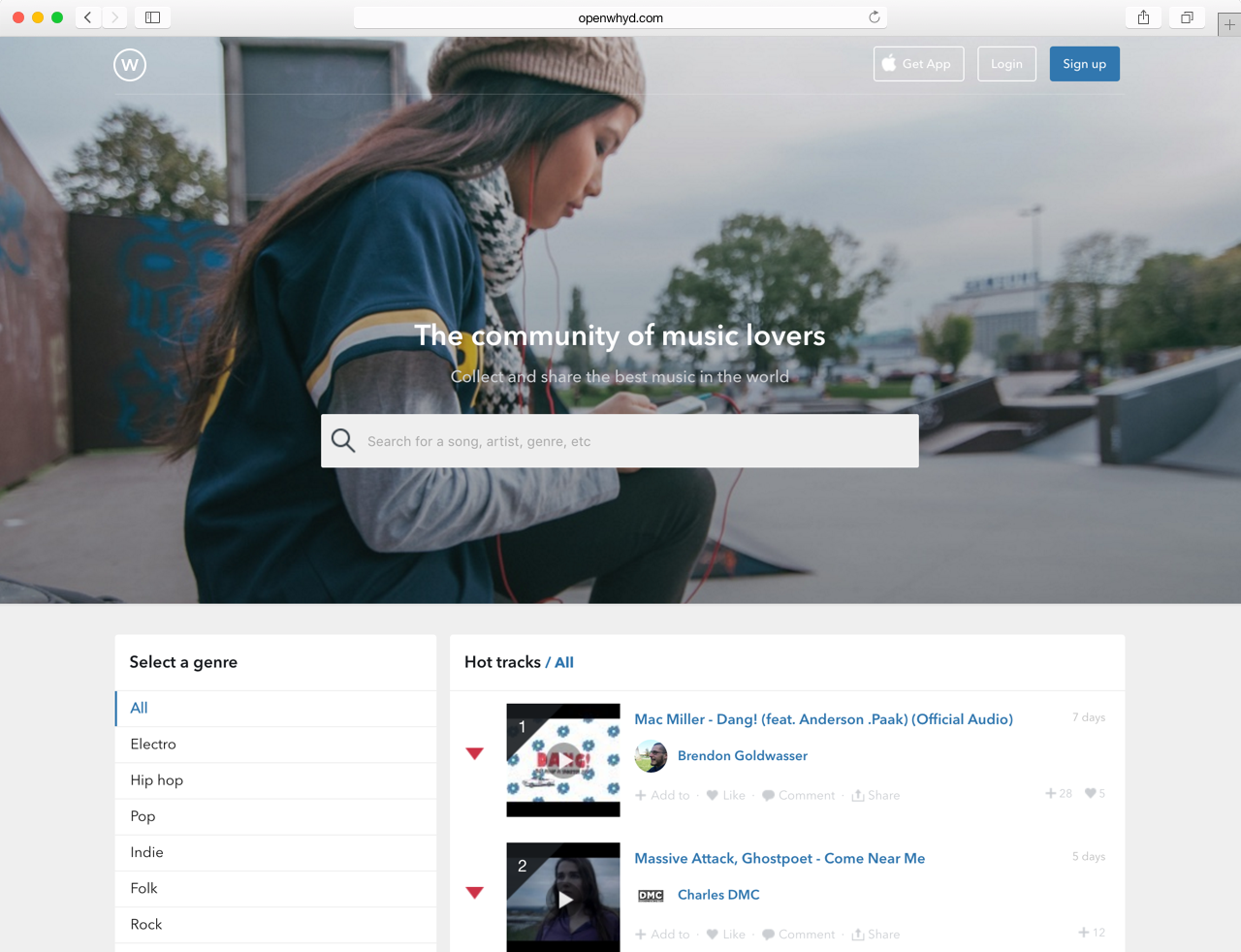 Whyd lets users bookmark and curate tracks from YouTube, Vimeo, Soundcloud, Dailymotion and MP3 blogs, and connect with other music lovers.