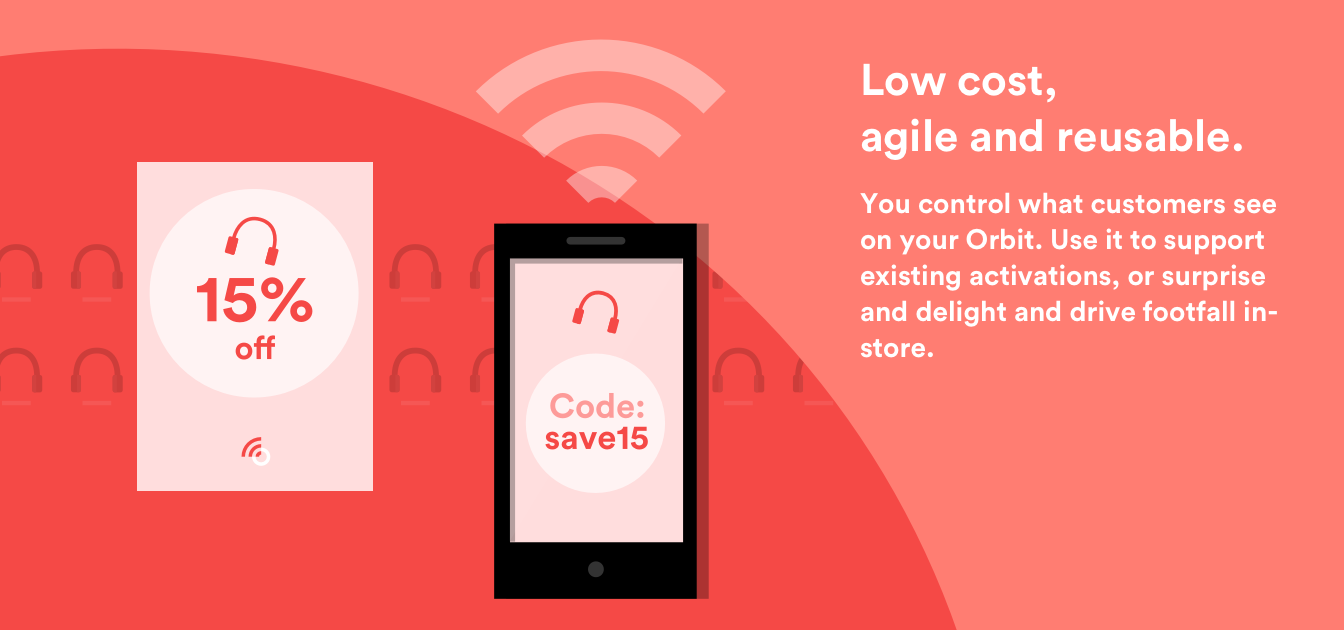 Orbit is a mobile marketing tool that connects your brand to nearby customers. It provides your business with a mobile app that your customers don't need to download.