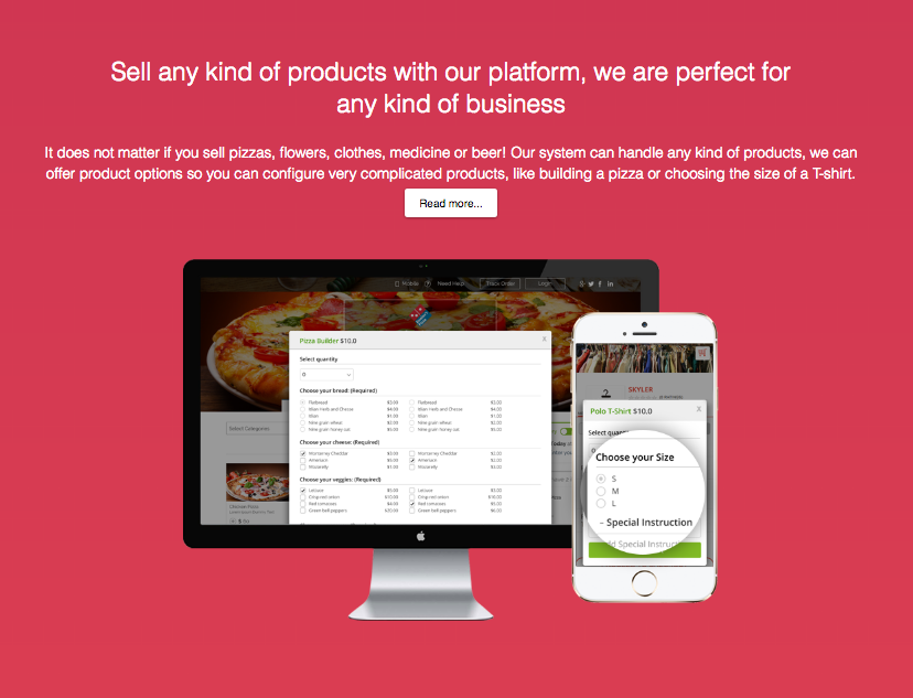 The easiest way to create your own store for delivery & pick on demand (for ex. restaurants or wine), so easy that your site can be done in less than 3 minutes. So powerful that it can also handle clothes like this success case: www.coleccionberlin.com