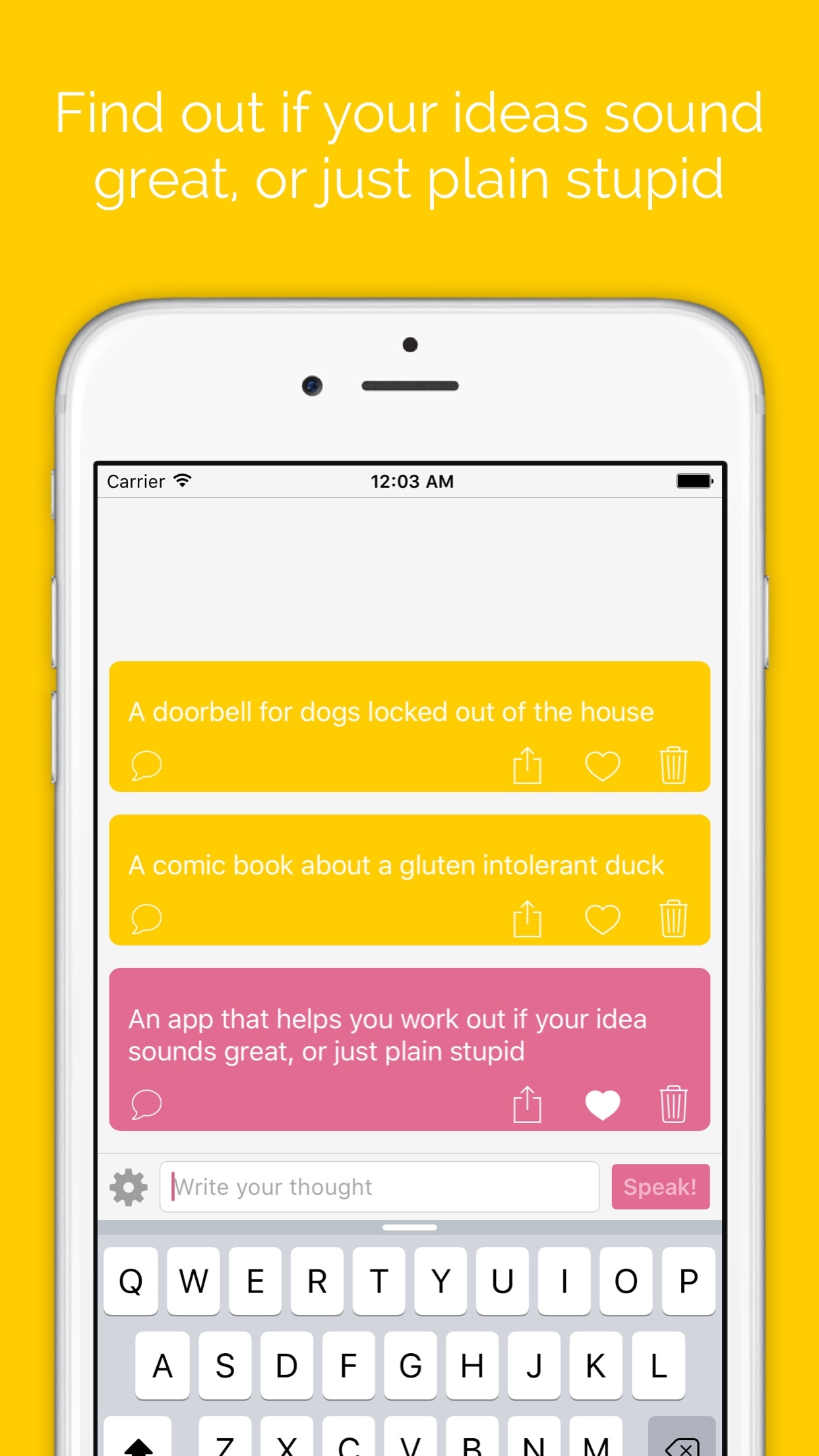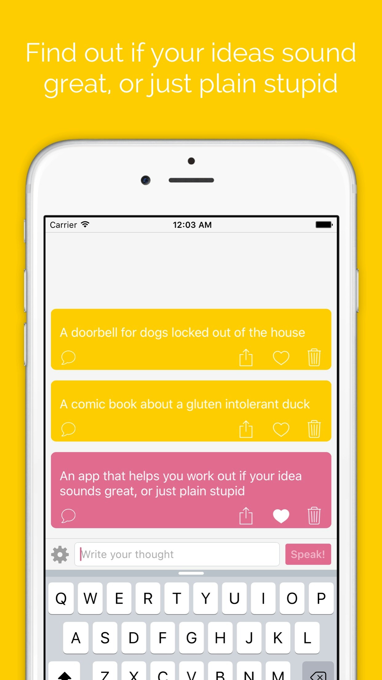 Everyone thought Snapchat was a stupid idea when Evan Spiegel pitched it to his class.... the ideas that sound stupid at first, or are at least not obvious, usually end up being the best.