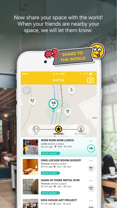 What's OUTTA? We let you place stickers, filters, and messages in real-world locations. When another user comes to the location, they unlock your space and see your stickers overlaying the world, live through their phone's camera.