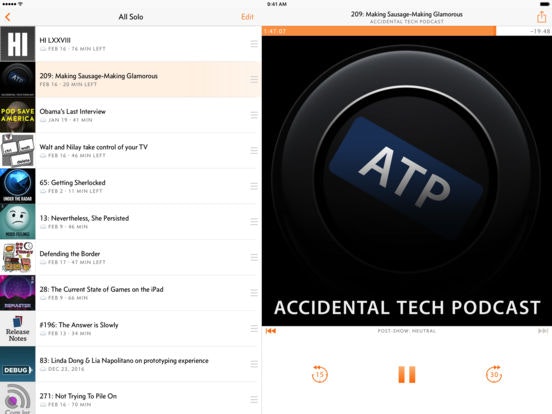 I love podcasts and use overcast every day. It's almost always 'invisible' (I press play and it just works) but I find the way I can have my 'every episode' podcasts and the ones I just dip into easily discoverable in the app.