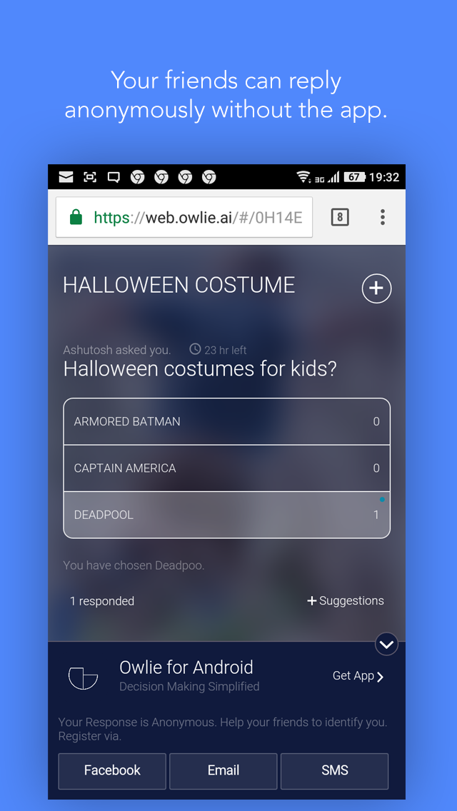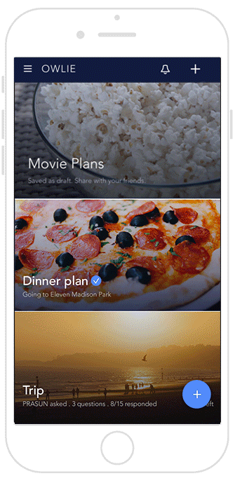 My name is Ashutosh 🖖 and i'd like to tell you a little about Owlie - a beautiful app for quick and easy decision making among a group of friends.