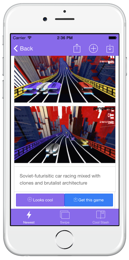 Pangamea is for visual game discovery of Android and iOS games. You can find new games by looking at 5-second clips of real gameplay. Swipe right on games that you like and left on games that look boring (you know how that works). You can also make a stash of interesting games. I'll be happy to answer any questions.