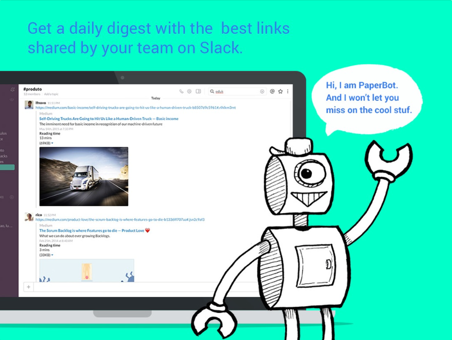 Thanks for adding The PaperBot to Product Hunt. We are very excited to launch the first release of this tool and we have big plans for it. Every day we are exposed to way more information than we can actually process. We get great stuff shared from coworkers on Slack, but we don't always have the time to read and process everything immediately. That's why we… See more
