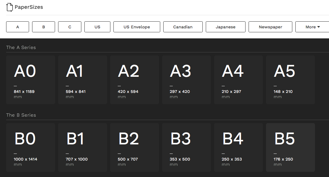 In total, papersizes.io lists over 250 international paper sizes in metric and imperial units, and with a clean and minimal interface, it’s a very usable tool on both desktop computers and mobile devices.