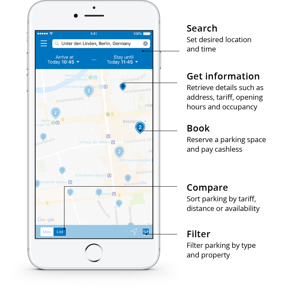 Hi hunters! At ParkU we empower anyone to find and book parking spaces in inner cities as well as at airports and cruise ports throughout Europe. Give it a try!
