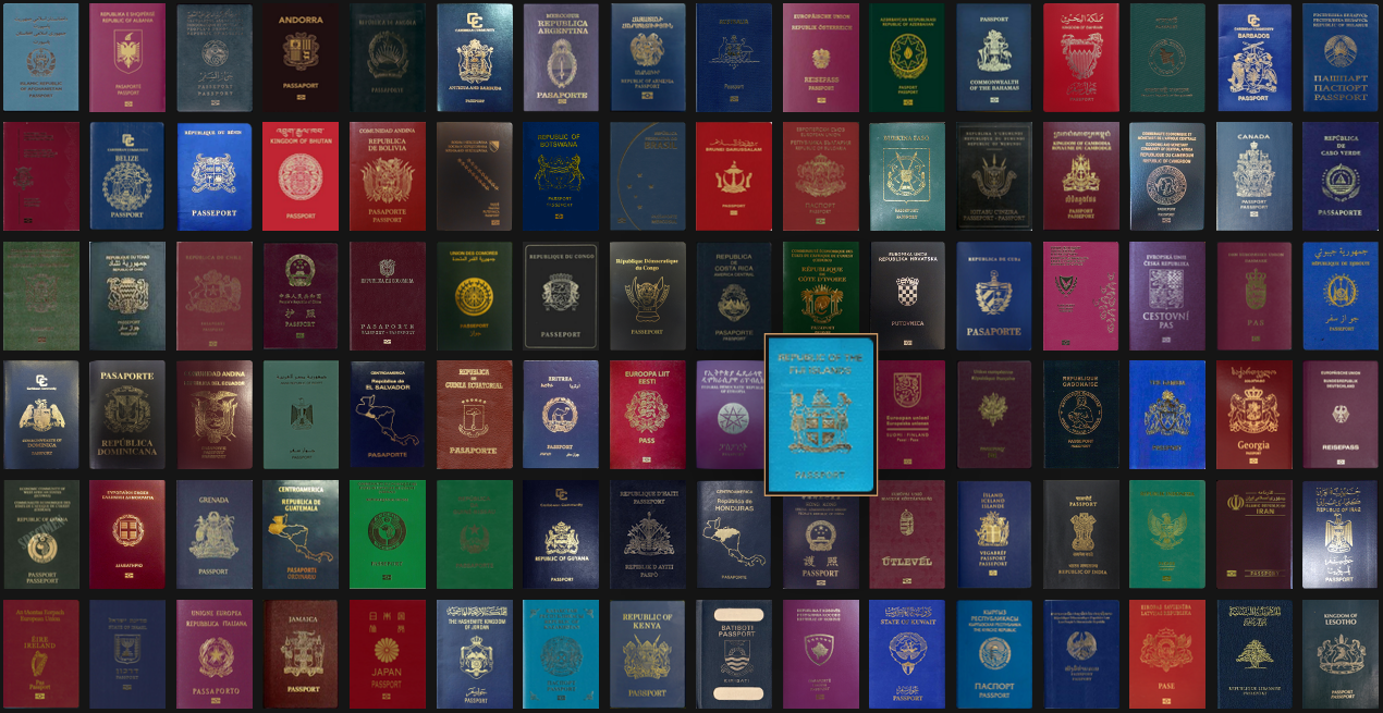 This is awesome! See pictures of all the world's passports. Then separately see a leaderboard of which passports have the most 'power' (visa free travel); and compare passports against each other.
