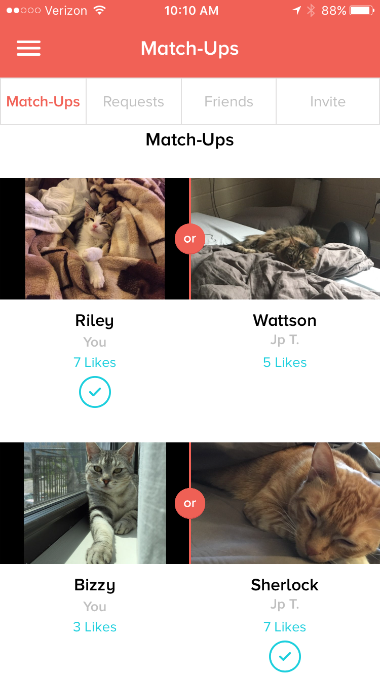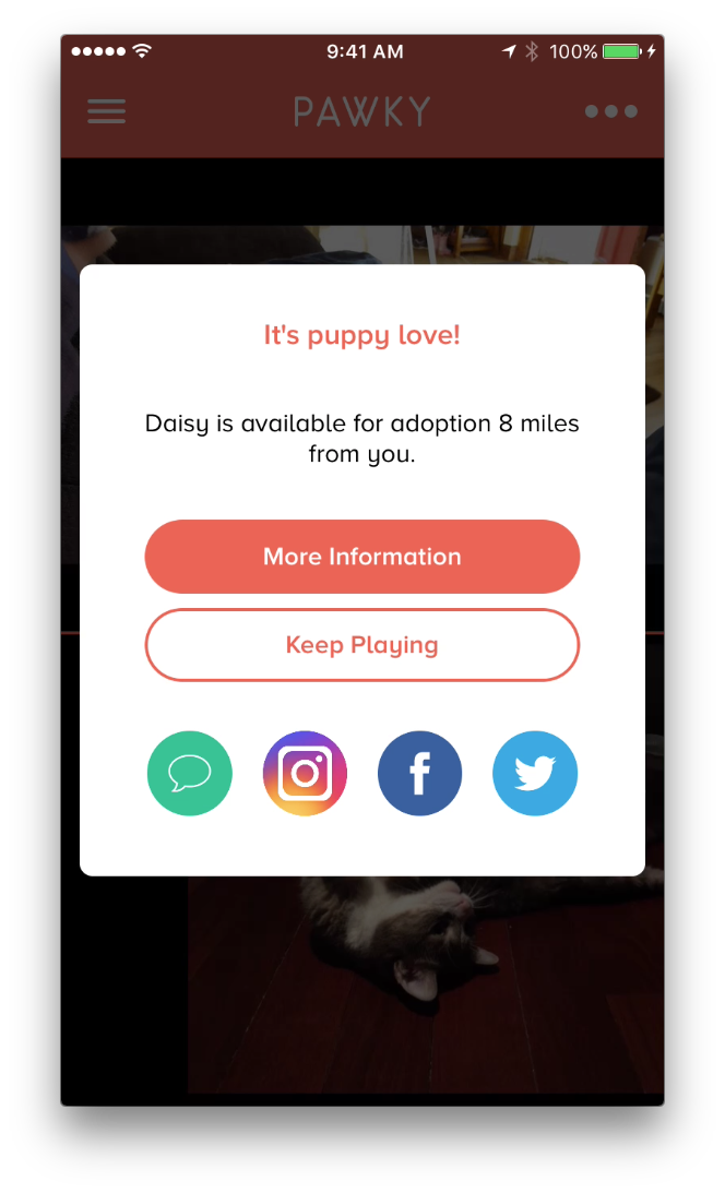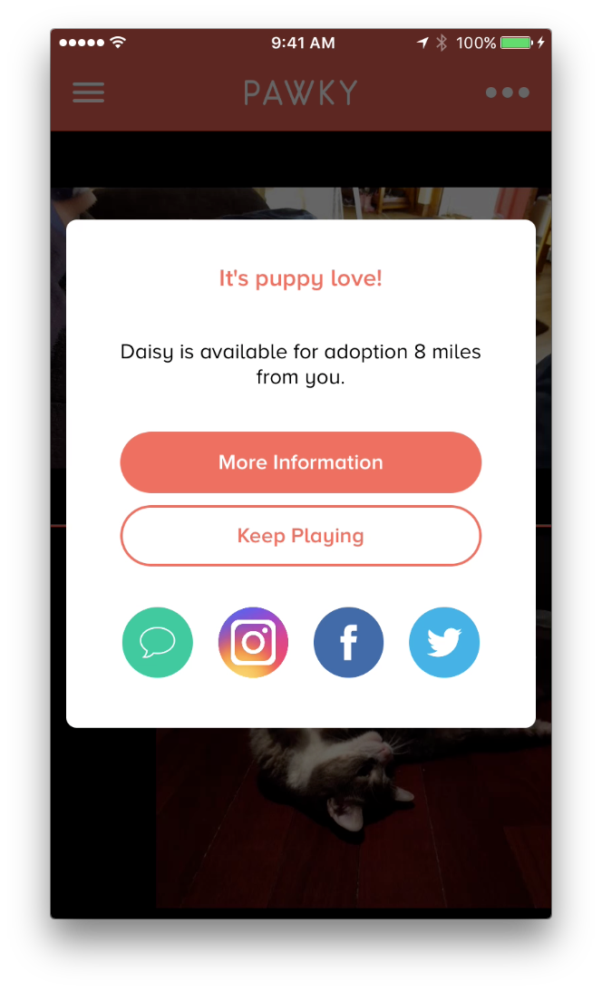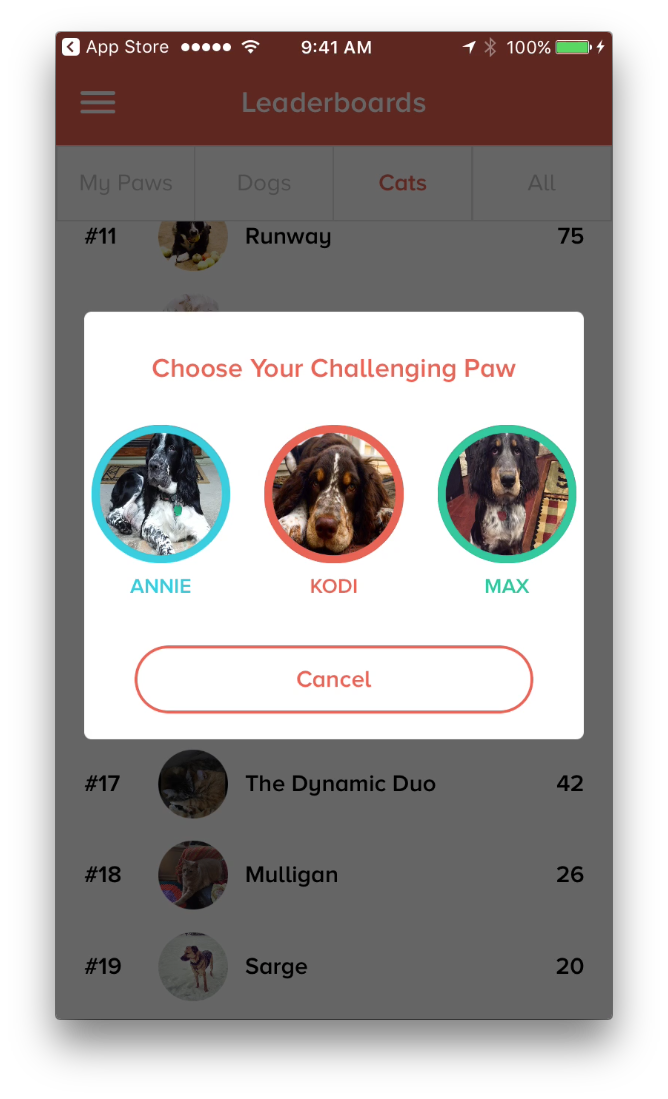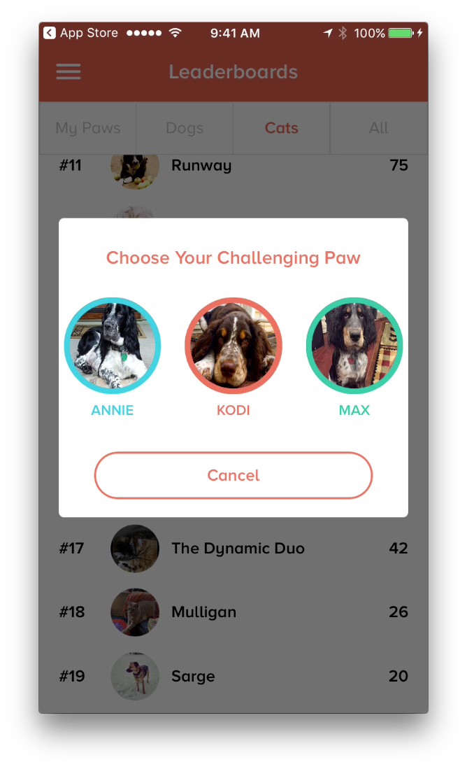 Fun idea and catchy. Clean UI too. I could see it really helping pets get adopted if you can get a lot of shelters participating. I wasn't quite sure what the timer meant, but maybe that's because I did't challenge anyone, was trying it out on my own. Good luck with it, fun app with a worthy cause.