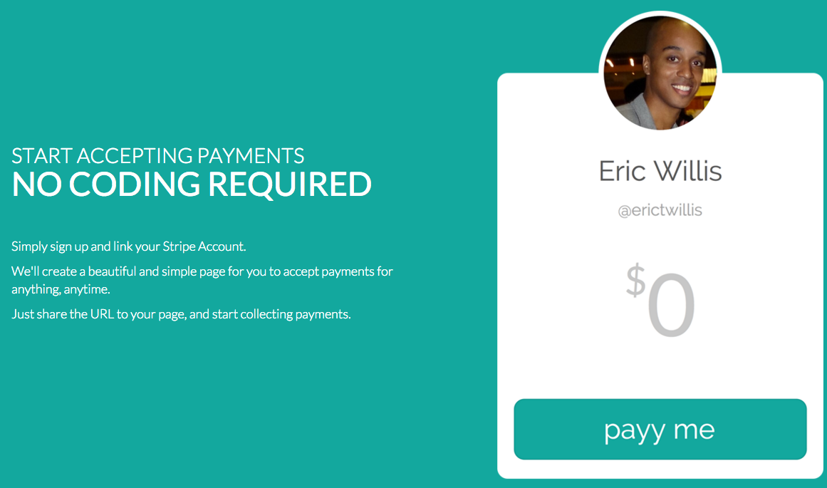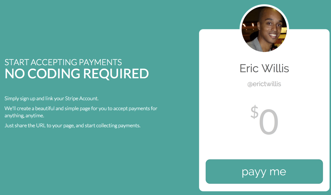 Interesting tool. Connect with Stripe (Payy takes an addition 1% fee on top of Stripe fee.) You get a personal payy page where people can type in a number and pay you. It'd be cool if, in the future, they added the ability to set a minimum price, or different pay pages for your products (i.e. http://payy.me/nate/mynewcd). Good work Dylan and Mubashar!