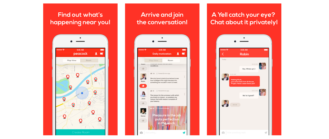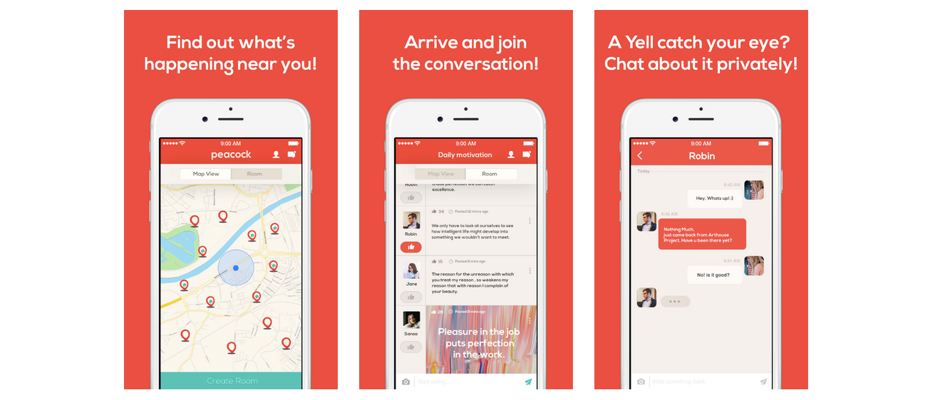 Peacock is a location specific social networking and messaging app. It allows you to get in touch with everyone in your immediate area, be it a bar, a festival, a conference, a university faculty etc. Through this we’re hoping to create a friendlier world, where people can leverage technology to actually meet new people, instead of just viewing happenings fr… See more
