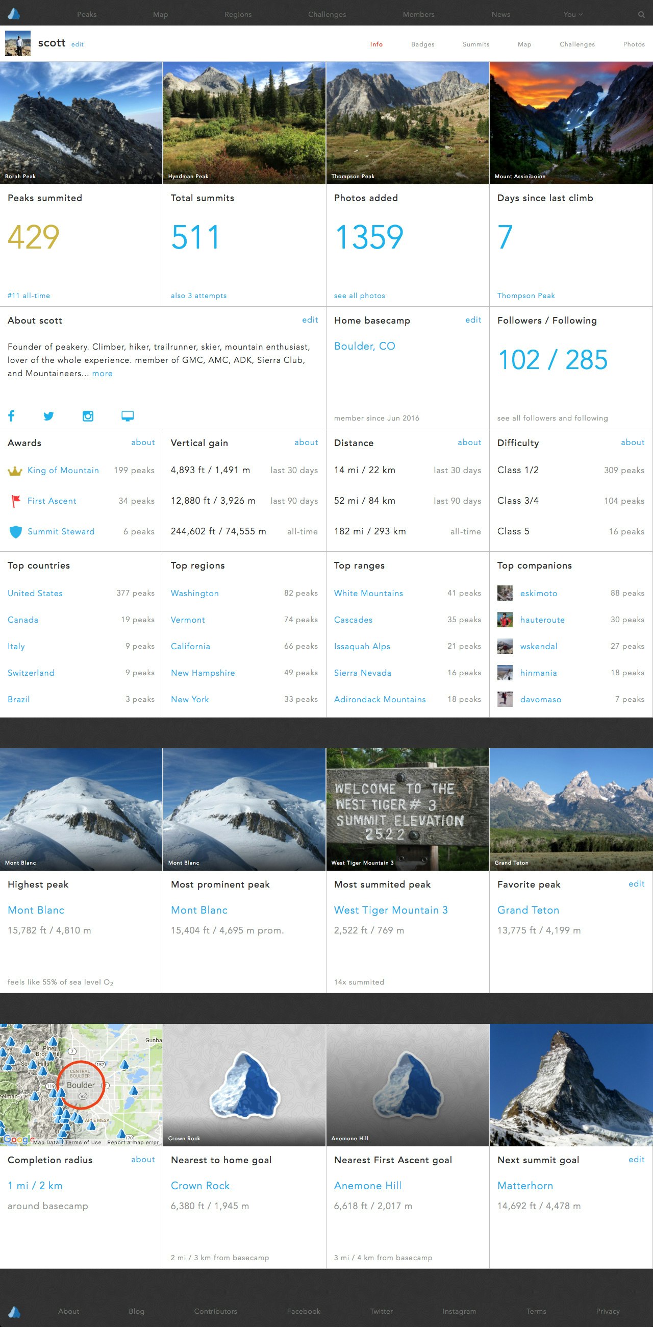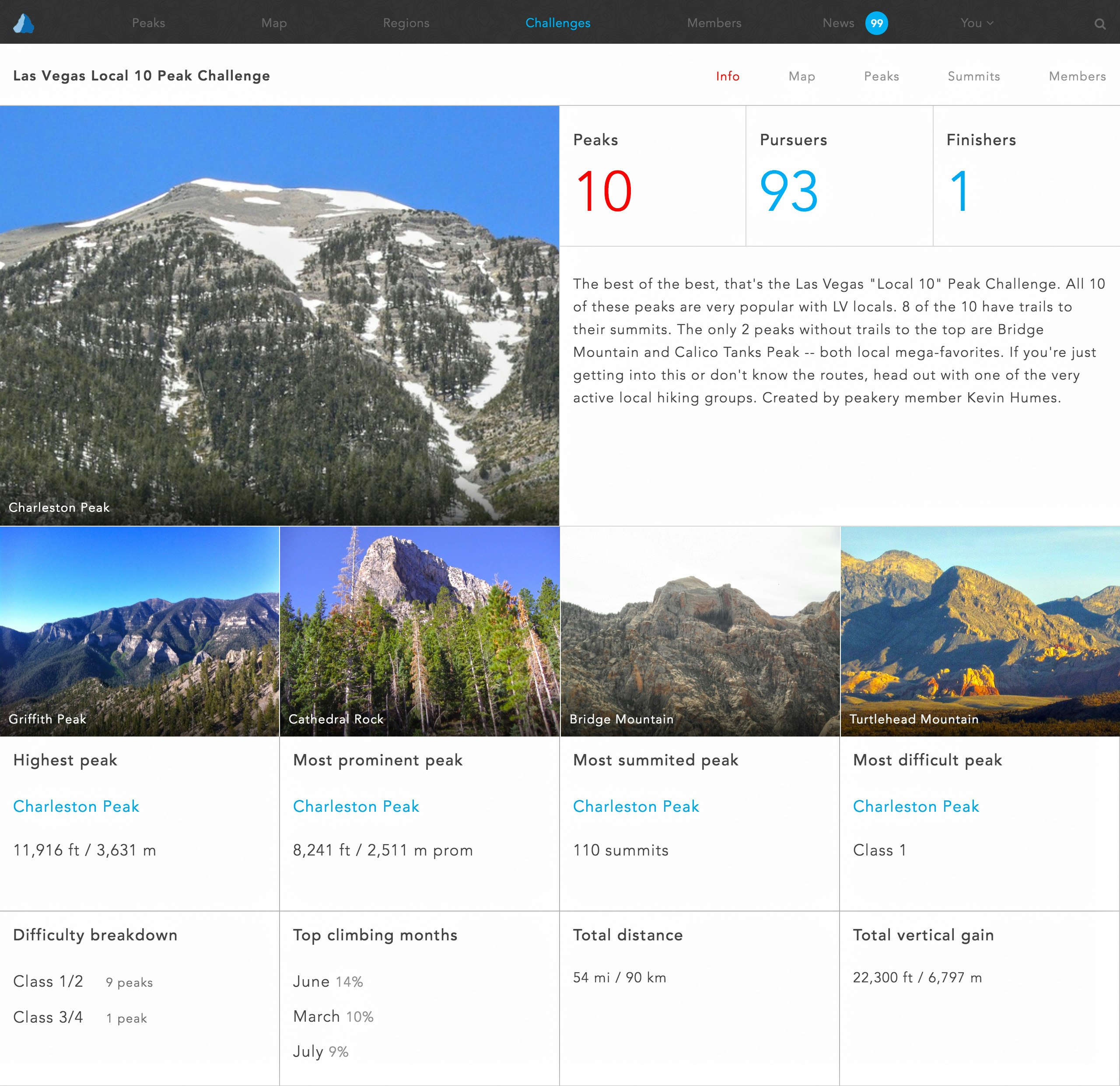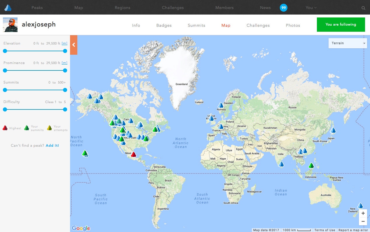 peakery helps you find great peaks to climb based on your experience. You can also tackle 300 "Peak Challenges" (curated collections of peaks), track your summits, earn Peak Badges, and follow the mountain adventures of your friends and passionate members around the world.