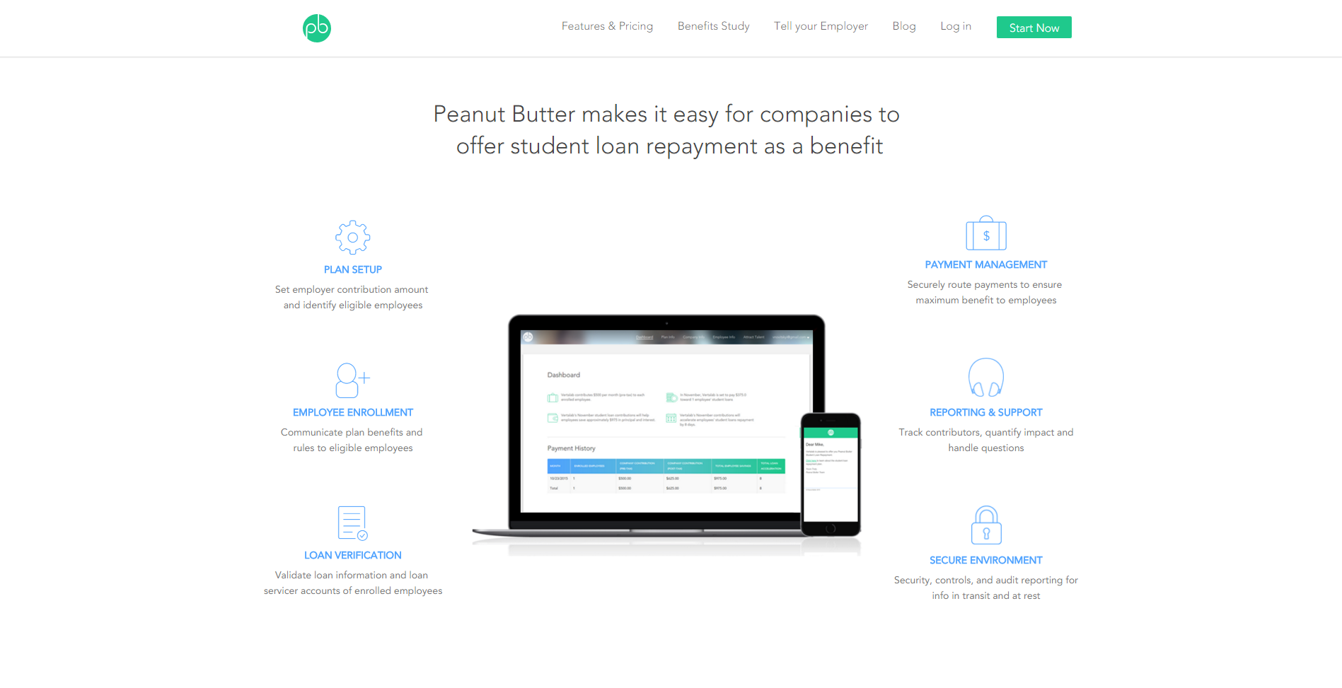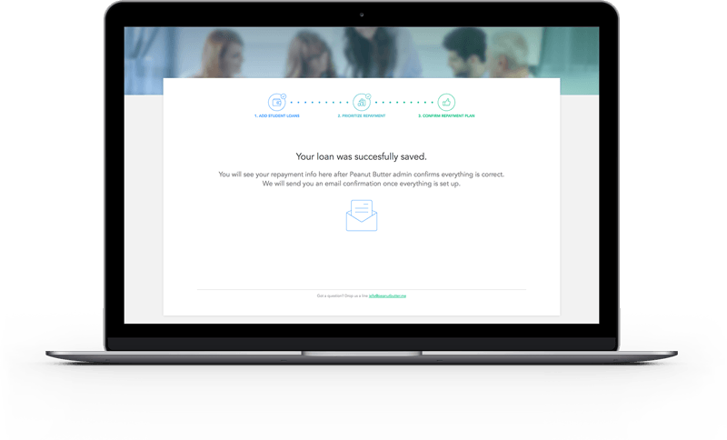 From PB's "About Us" page - "Peanut Butter℠ helps companies provide a unique student loan benefit to attract and retain Millennial employees. By facilitating modest contributions to employee student loans we help employers reduce turnover and hiring costs, differentiate their employee value proposition, and aid in the solution to America’s $1.2T student debt… See more