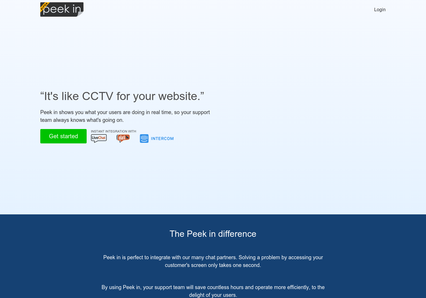 I built peek in to offer better support to anymailfinder.com users, and it made my life incredibly simpler. If you use live chat you can simply use the chrome extension to open with one click your user's screen and point to stuff to them. If you don't, you get a list of active users and you choose the one you want to see; click; and the screen pops up.