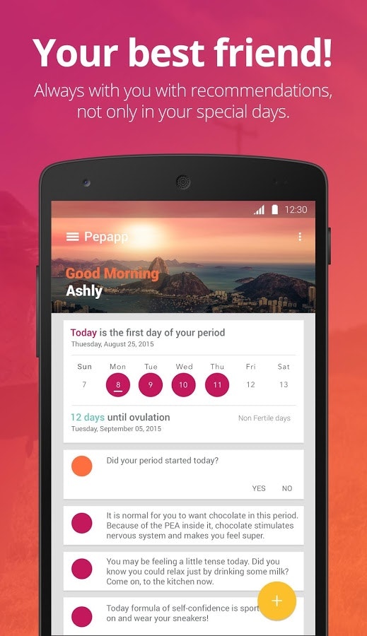Pepapp tracks menstruation periods, gives information about ovulation periods, cheers you with entertaining recommendations. This menstruation period calendar which you will use by creating your personal identity helps you take precaution by informing that your menstruation period is approaching. Moreover; it backs up your all data and regularly informs you about your menstruation period.