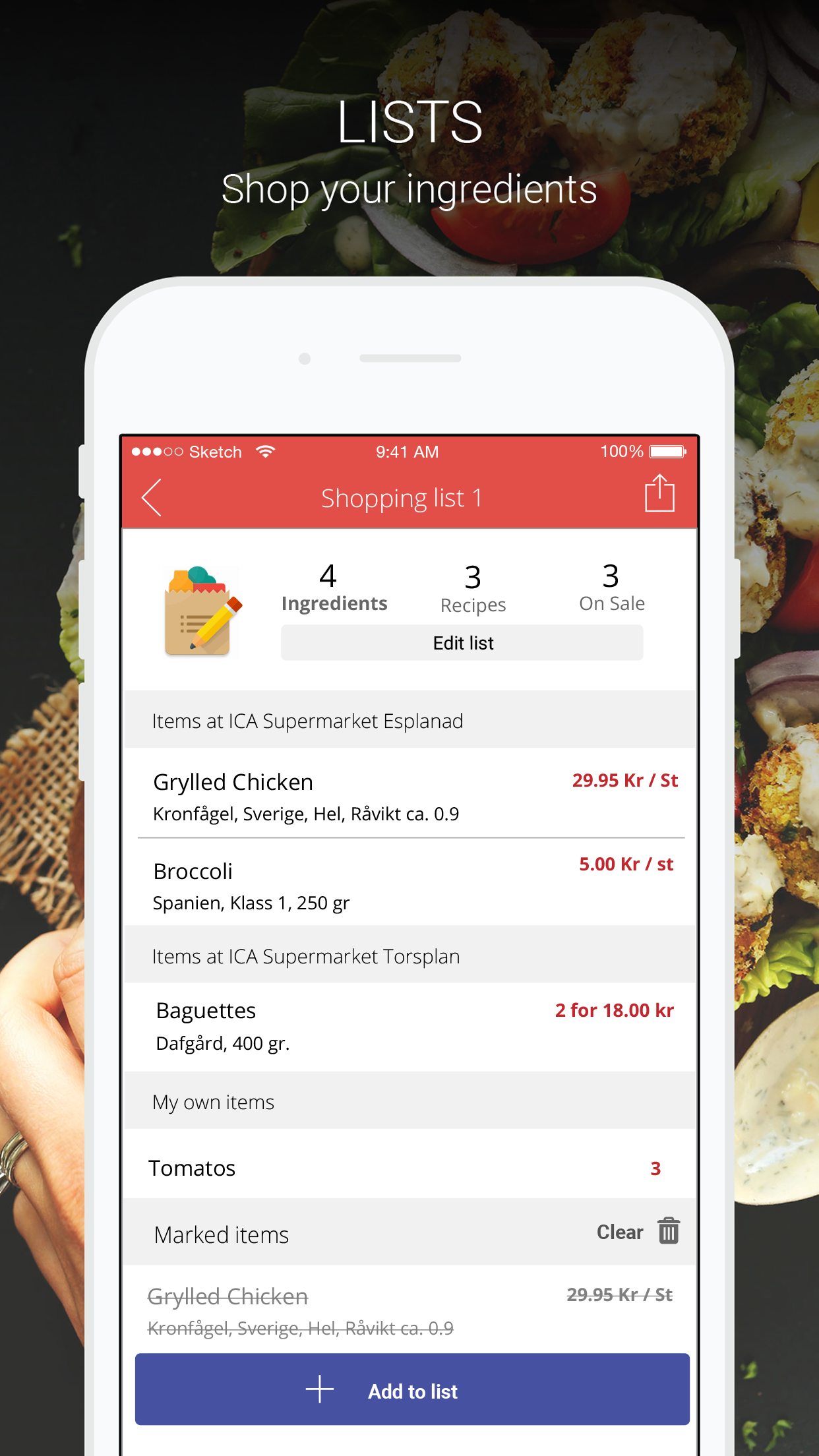 Would be great if I could add what I have at home already in combination with deals to search for what to cook. Looking forward to see how this app evolves.