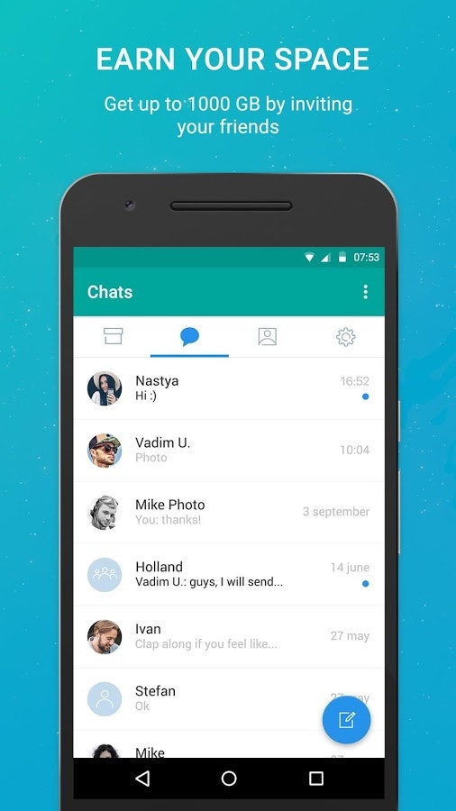 Pibox is the easiest way to message, share and store large files without loss of quality and they give 1000 GB for free)))