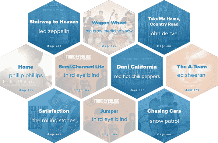 Looks great! Just a heads up: on the "What you'll learn" page, some of the Stage Three song badges under say "Stage One" under the song name.
