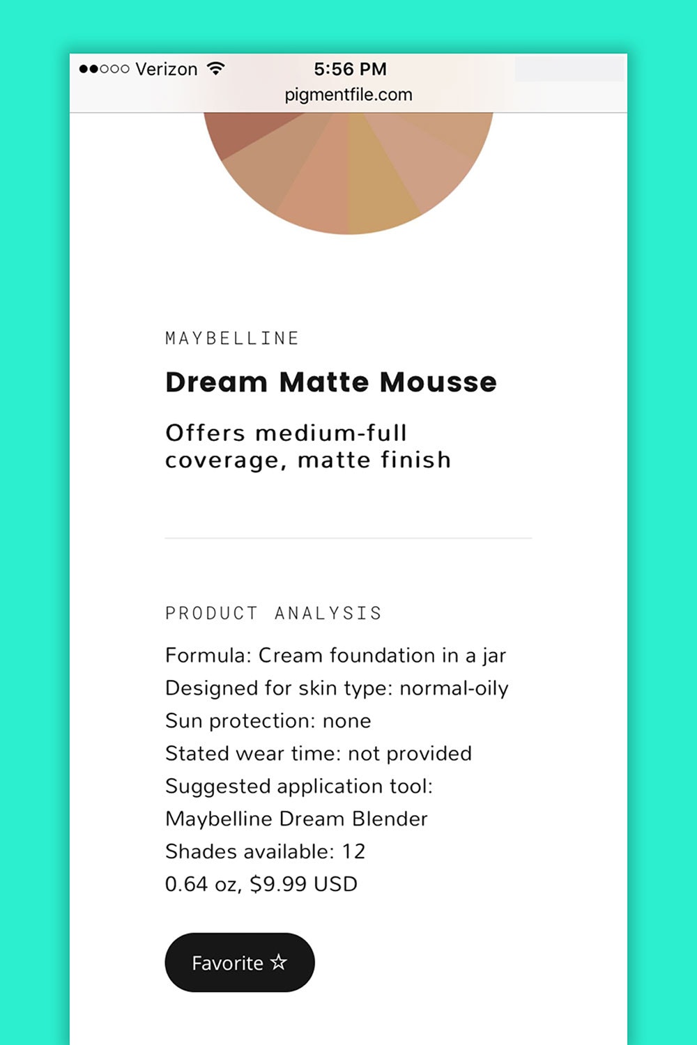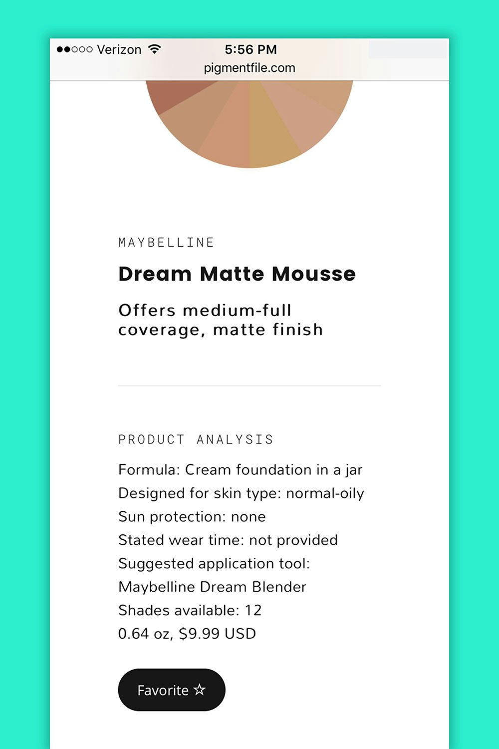I made Pigment File. It’s the one place that displays all the facts we want to know about a foundation formula, in a simple way.
