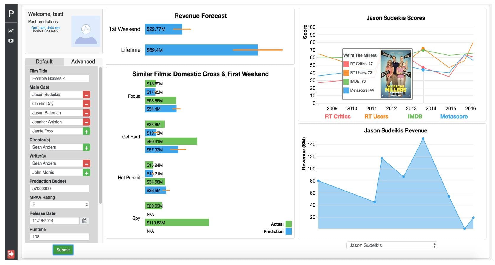 We also post public predictions on Twitter every weekend @PilotMovies, with an average accuracy of ~80%.