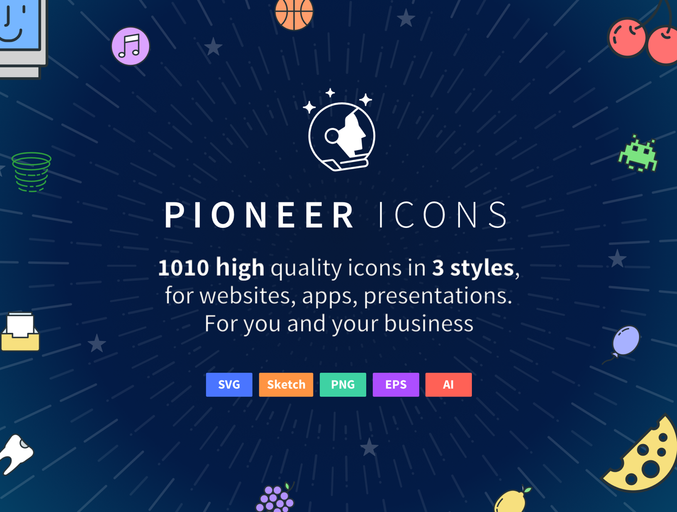 Hello Hunters! Pioneer is a collection of 1010 high quality icons in 3 styles, for websites, landing and promo pages, apps and presentations. Built with Sketch 4 supporting SVG, EPS, Illustrator and including PNG files for every icon.