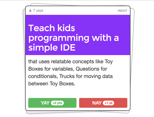 Echoing a love for the simplicity. One thing that I'd like to do is add a line of context why Yah or Nah. I've love to point to similar products, inherent challenges that immediately come to mind, etc.