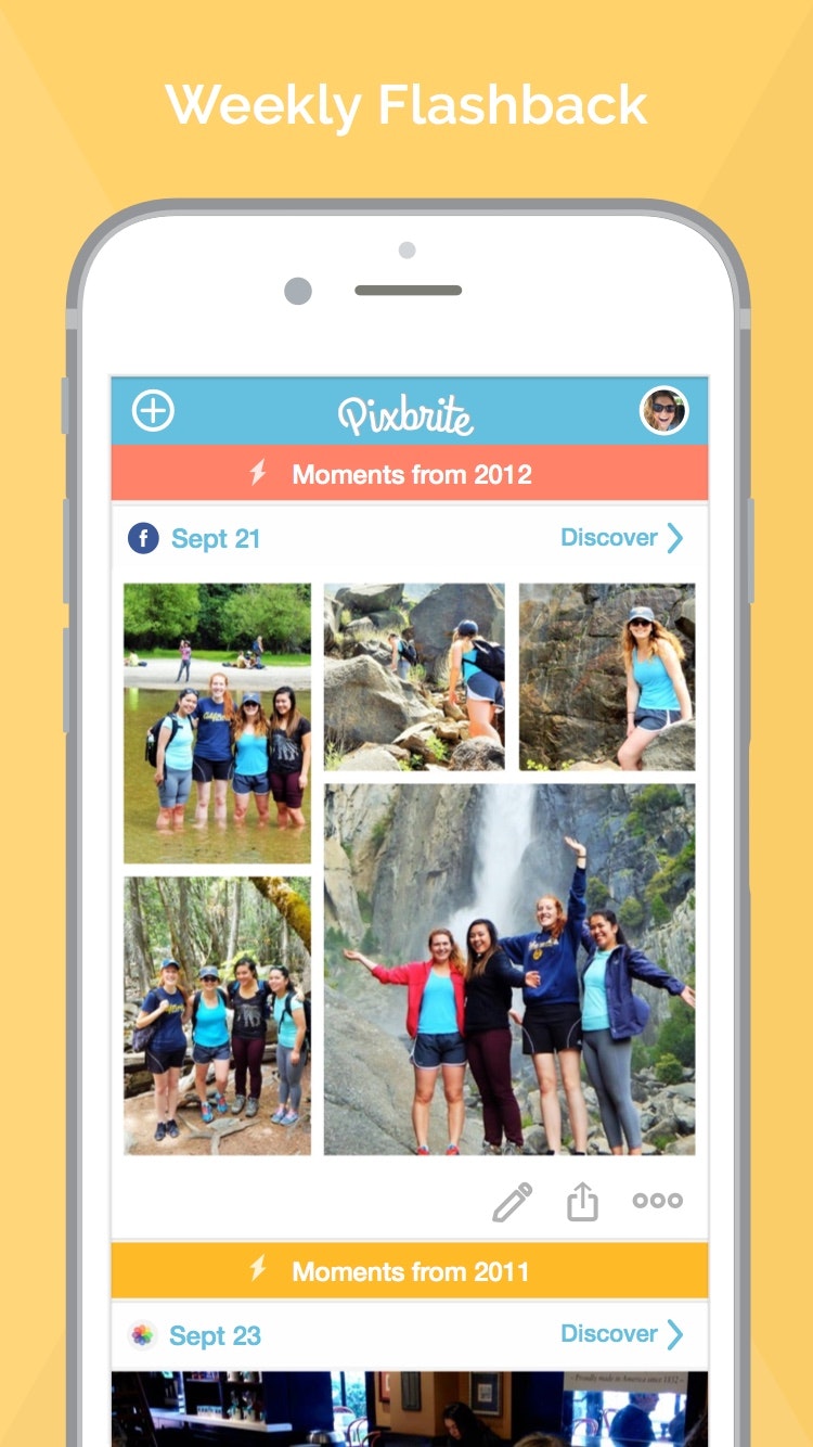 Get your photos from past and present automatically organized into a timeline of moments. Retouch, share, or discover related photos. Enjoy living in your moments!