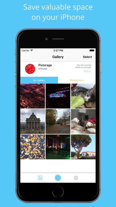 * Save space: With Pixtorage, your high resolution photos are stored securely in your own private vault in the cloud, while your lower resolution photos are kept on your device, thus saving imense storage space.
