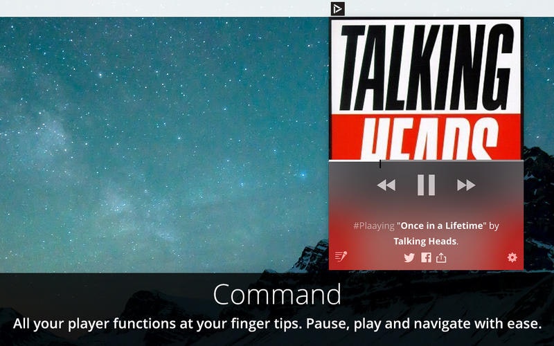 What a gorgeous beauty of a Mac music player and sharer! Just the thing you need when you've got to switch between iTunes, Rdio and Spotify and want to share what you're pla(a)ying. Nice!