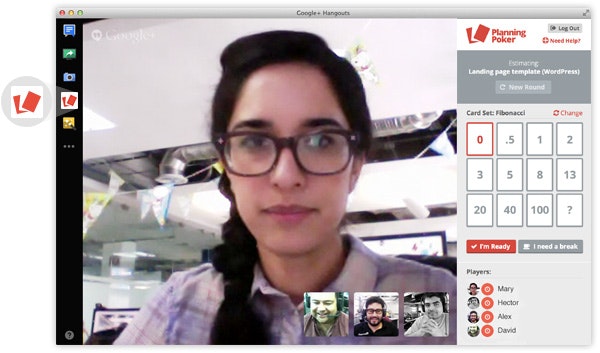 Planning Poker for Hangouts was a tool that we have been using internally at Nearsoft. We wanted to share it with the rest of the Agile development community that shares our passion for software and all things created for the Internet. It is a simple plugin so remote development teams can estimate more accurately in a fun and easy way.