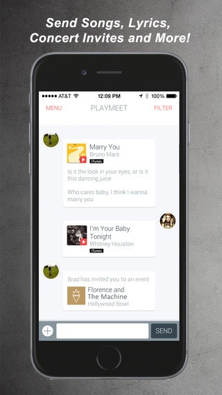 How's everyone doing today? PlayMeet is a location-based social music network that connects you with people who share the same musical interests. What's cool is you can share lyric snippets, songs, concert invites and music interest comparisons in a messaging type interface.