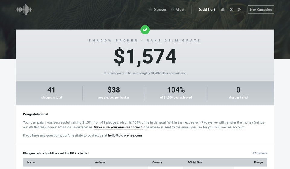 Happy to announce that me and Ib Warnerbring are launching our MVP - Plus-A-Tee - a purpose-built crowdfunding platform for artists and musicians.