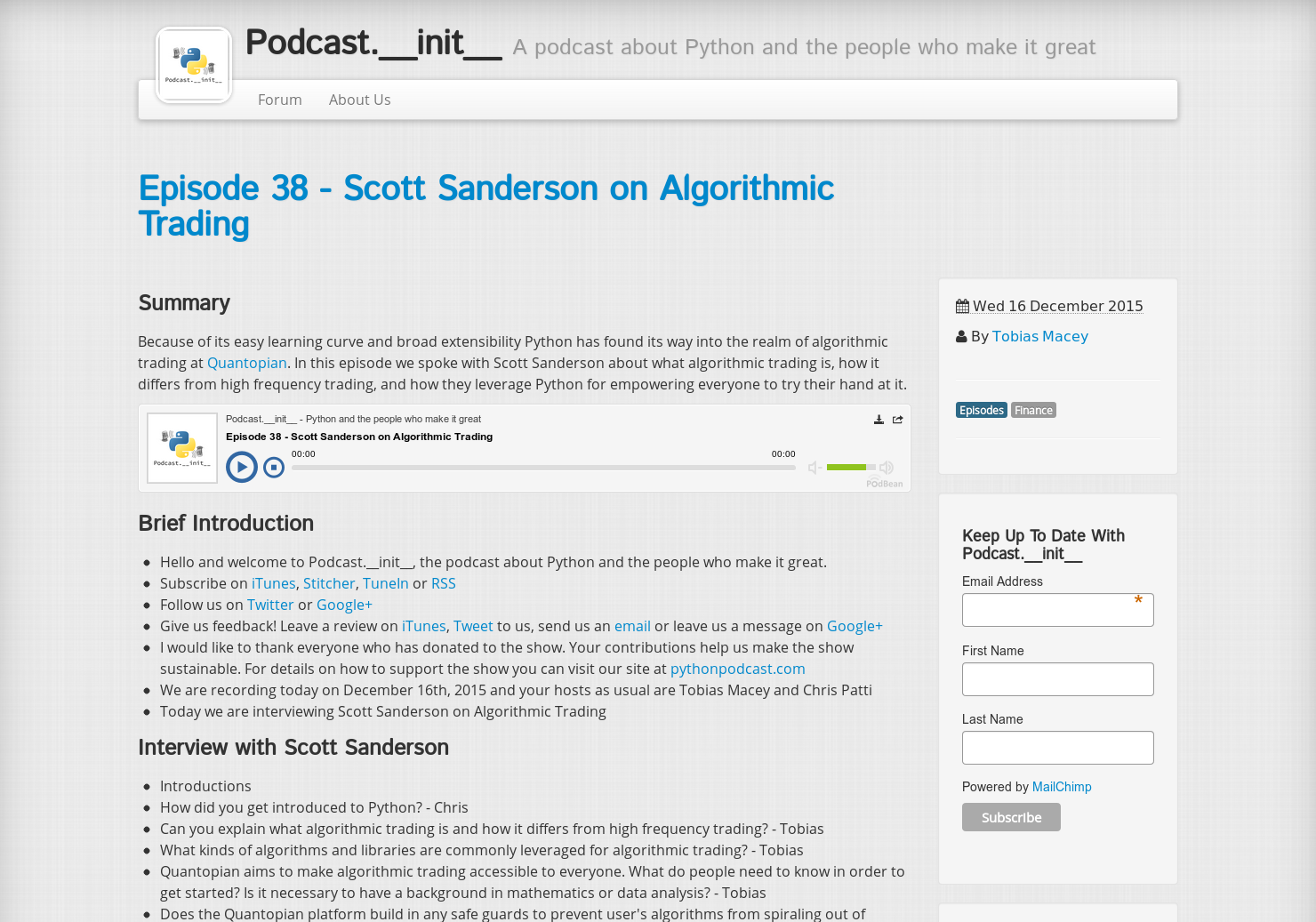 Podcast.__init__ Episode 38 - Scott Sanderson on Algorithmic Trading
