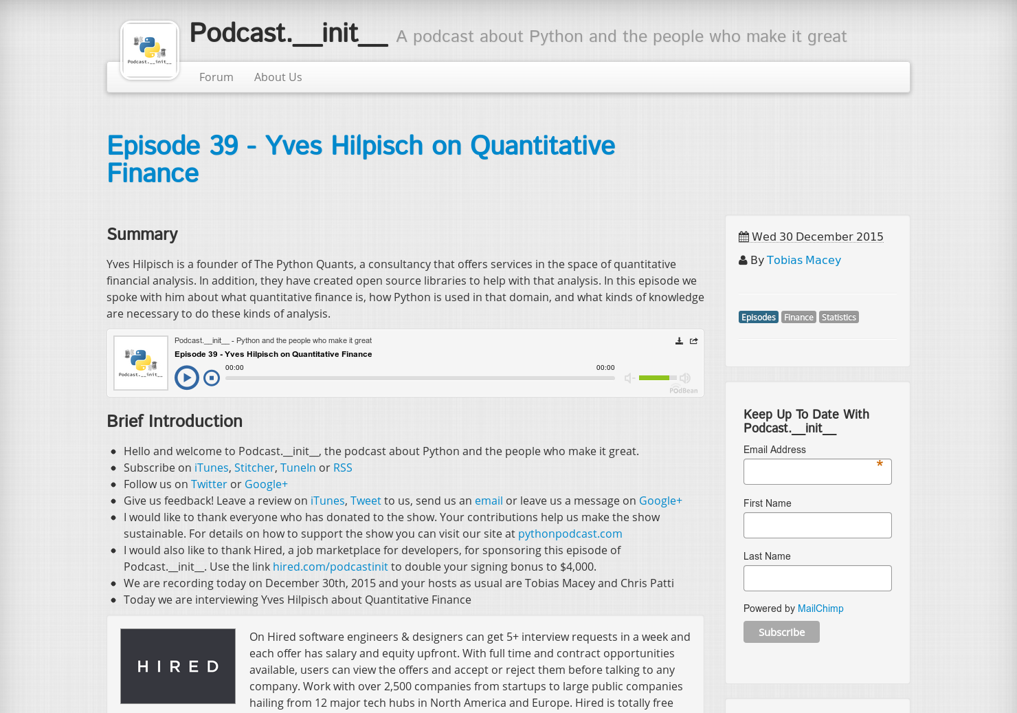 Podcast.__init__ Episode 39 - Yves Hilpisch on Quantitative Finance