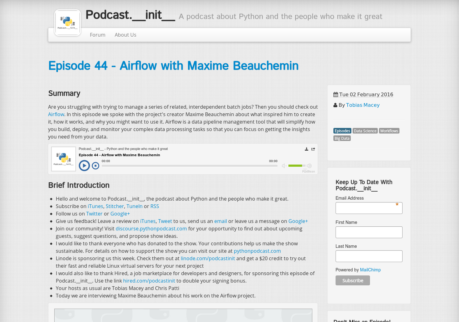 Podcast.__init__ Episode 44 - Airflow with Maxime Beauchemin
