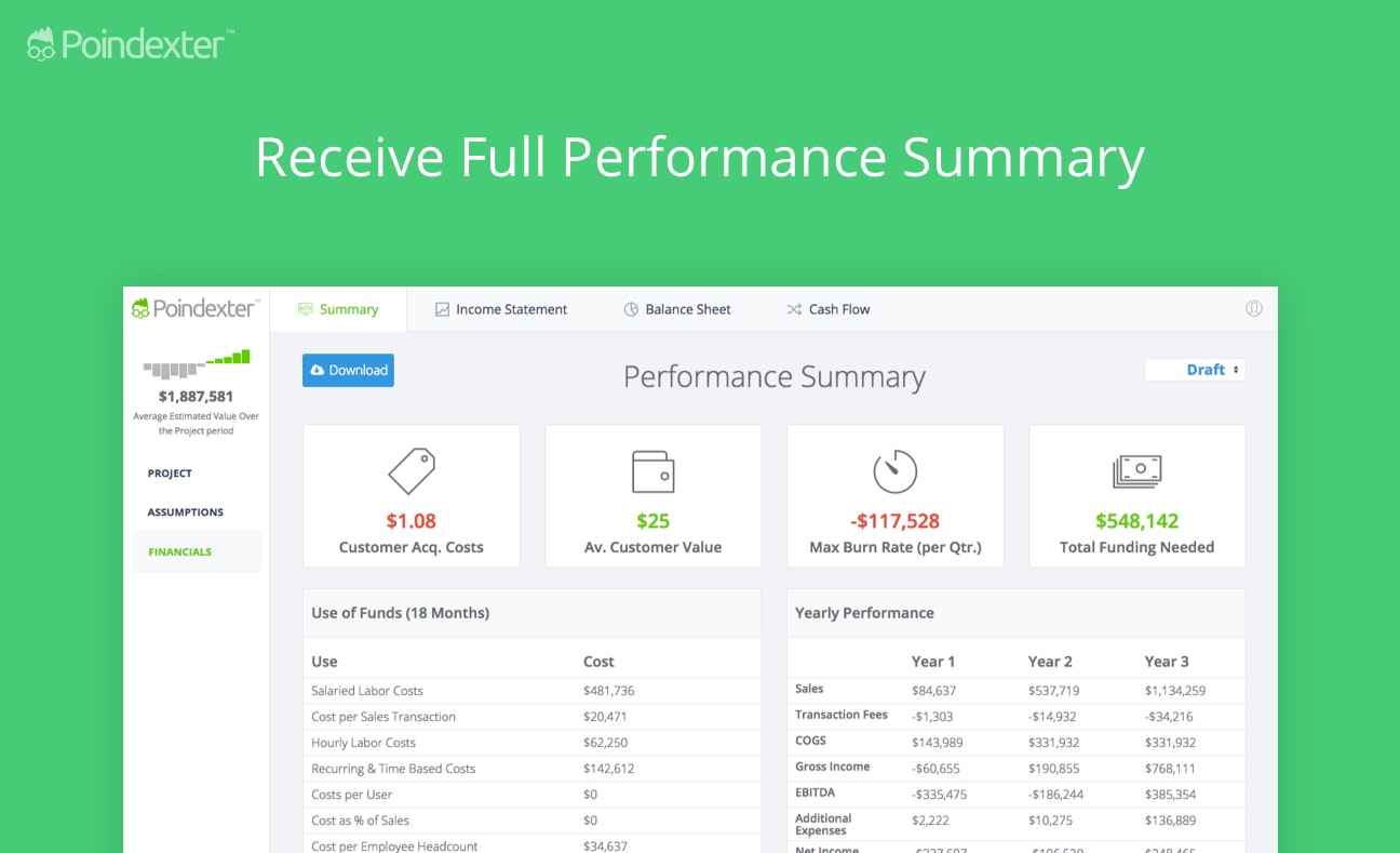 Poindexter is 10x faster than modeling in spreadsheets, and you don’t have to worry about making mistakes creating any equations.