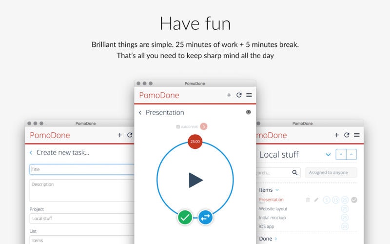 I used Pomodoro Time before but it can't keep track with my todo list and I need to manually enter the task name again and again, which is quite annoying. I like Pomodone of syncing most of the to do apps out there. I personally use Todoist so it works perfectly for me. Thanks for the great product!