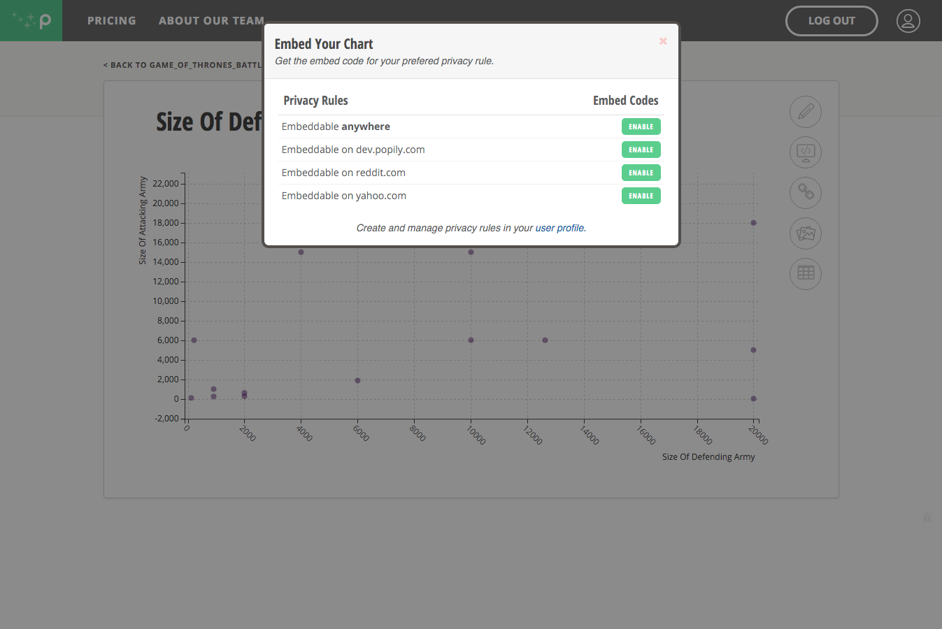 Popily's really awesome. I love that I can upload a spreadsheet and not have to build the charts - they do it automatically.