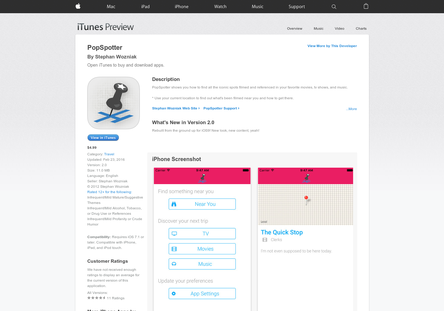 This was my first iOS app ever, built it back in 2012. I revived it with a nicer style set and a different backend. I'm planning to build more features in here, including check-ins, social logins, user photos & contributions, searching by location, offering curated trips, and more. Plus, continuing to add in locations!