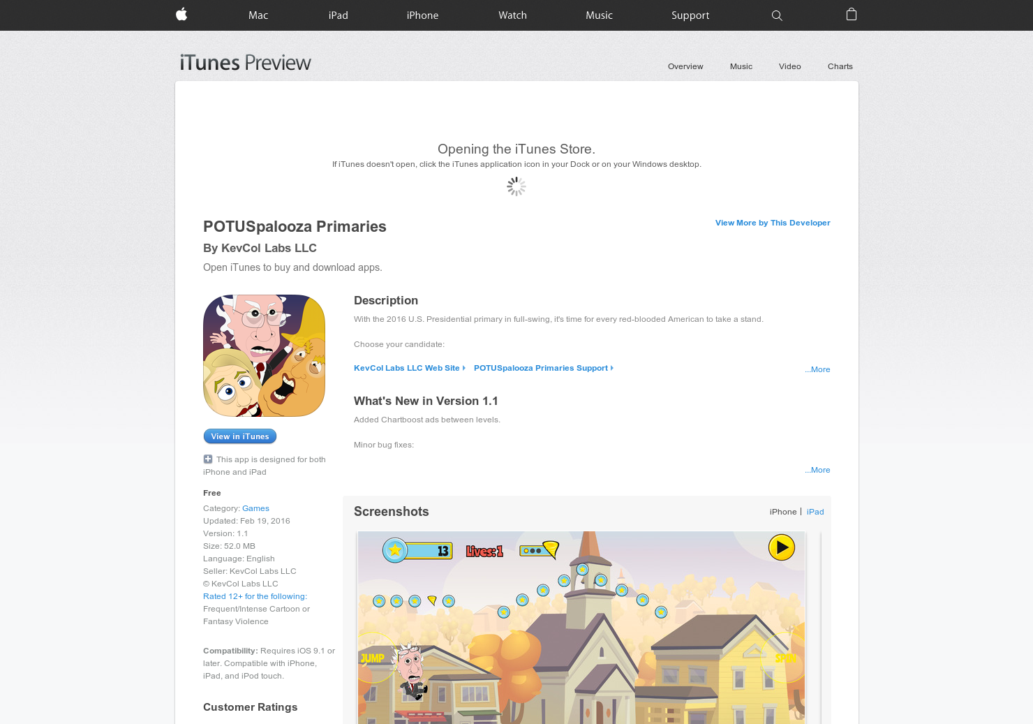Hi all! I'm Kevin, the guy who made this wacky game. I’ve been toiling away on POTUSpalooza from an undisclosed location for the past few months. I’m excited about it, but the important thing is what YOU think. If you have a moment, please give the game a spin and share any feedback or suggestions you like. BTW, a new release should be out soon which has i… See more
