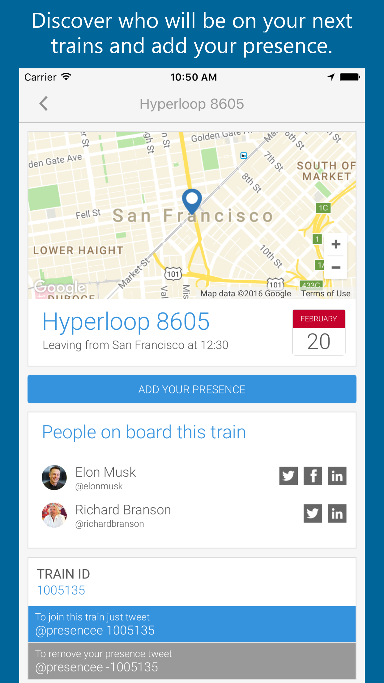 Presencee is a free social network that enables people to announce their presence at events, on planes and on trains. It can be used to create connections with people for professional or personal reasons.