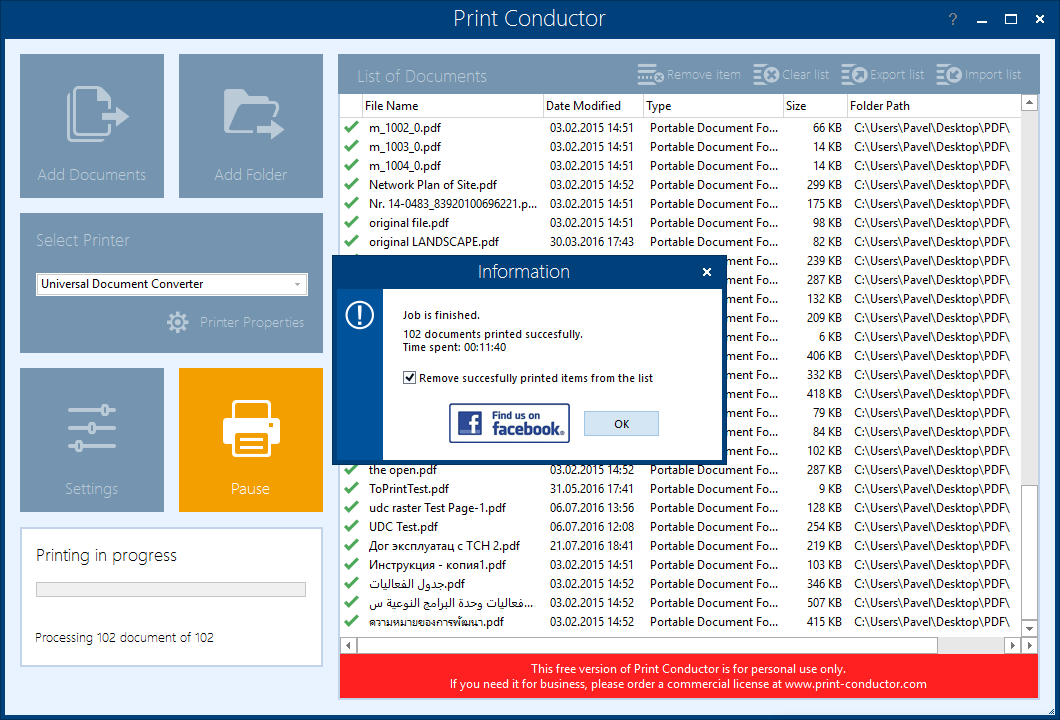 It supports Automated Printing of 70+ Files Types. At each moment the user knows how many documents have already been printed and how many remain in the queue. Any documents that failed to print are also reported to the user. After processing the entire list of documents, the program produces a detailed job report.