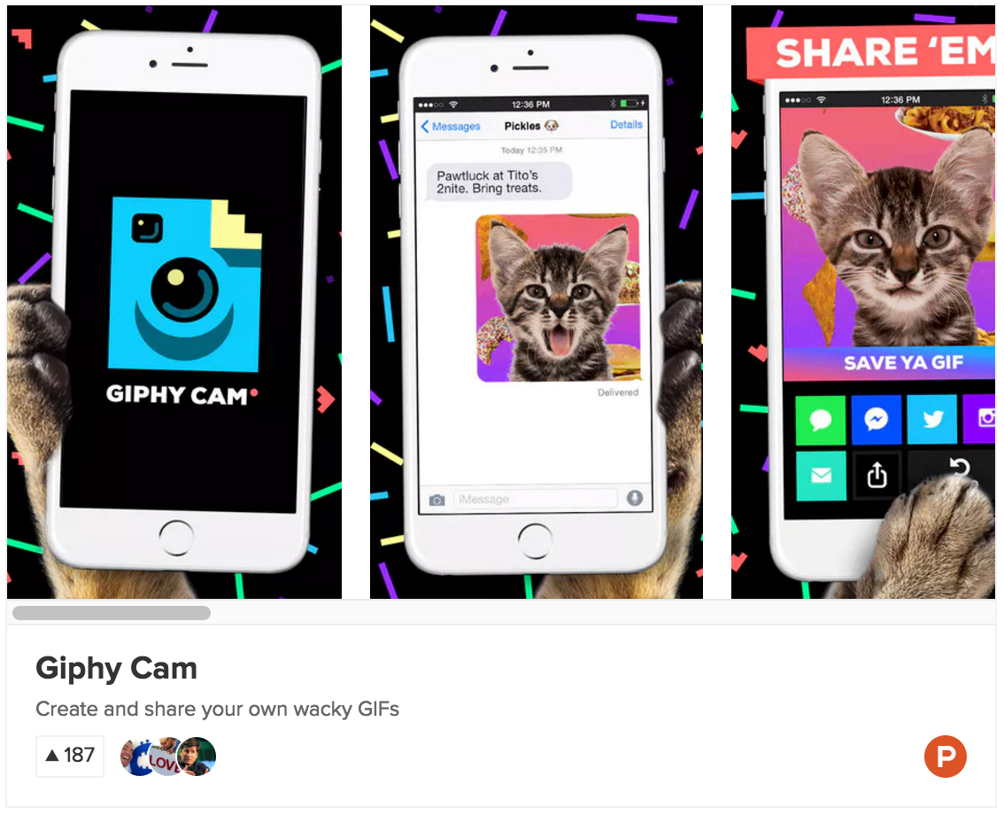 For the record, the explainer GIF for Product Hunt Cards proved to hold an extraordinary level of difficulty, and @rrhoover did it all in his personal GIF creation studio. π